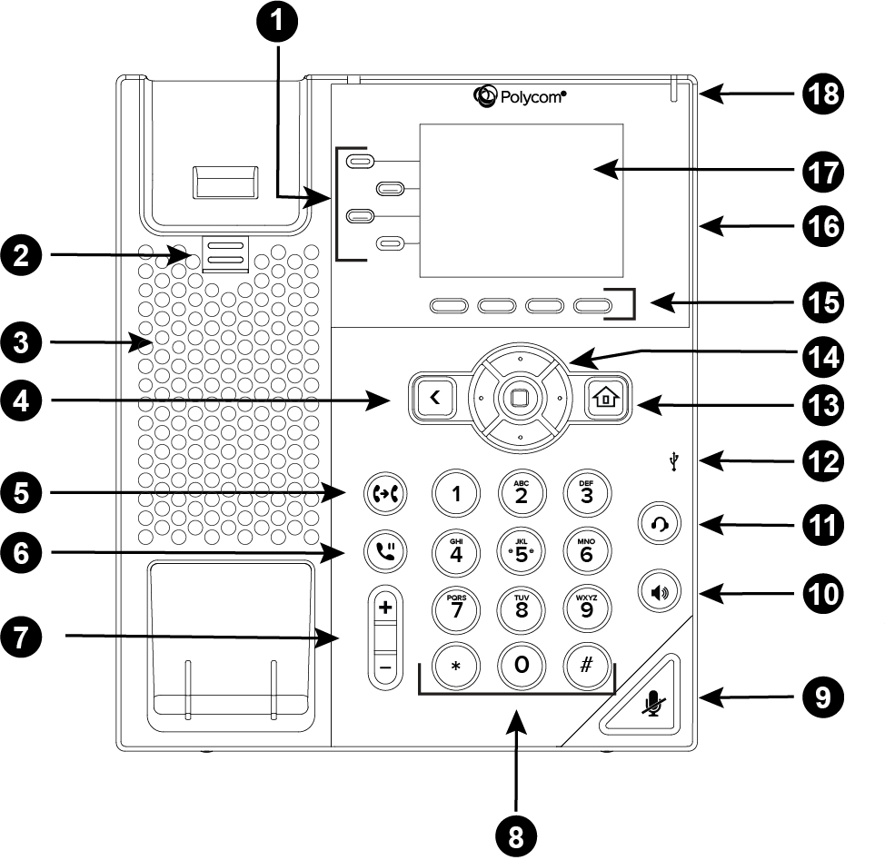 - Soft Keys – Dynamic on-screen buttons for actions like “Transfer”, “More”, “Redial”, etc.