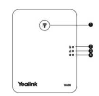 The Yealink W60B/W70B base station includes one multifunction button and three LED indicators. Use the diagram and descriptions below to understand each status.